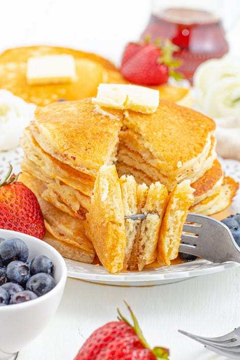 🥞Old Fashioned Buttermilk Pancakes– The best go-to recipe for the fluffiest old-fashioned buttermilk pancakes! Scratch pancakes with pantry ingredients and easy homemade buttermilk!